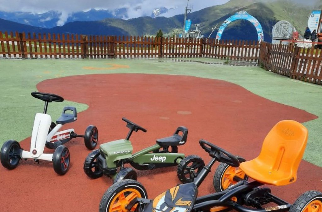 Coches a pedales: Ilimitado en tandas de 5 minutos. Altura máxima 125 cm