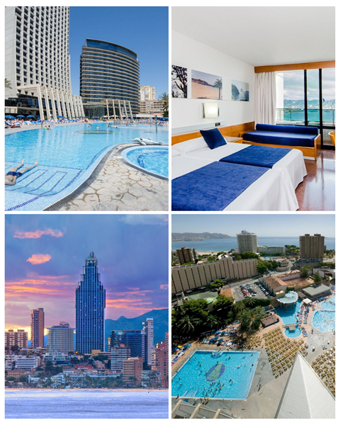 El Gran Hotel Bali es el más alto de España y uno de los más altos de Europa🗼. Su edificio más alto alcanza los 186 metros de altura, así que ¡imagínate las vistas que tendrás desde allí!