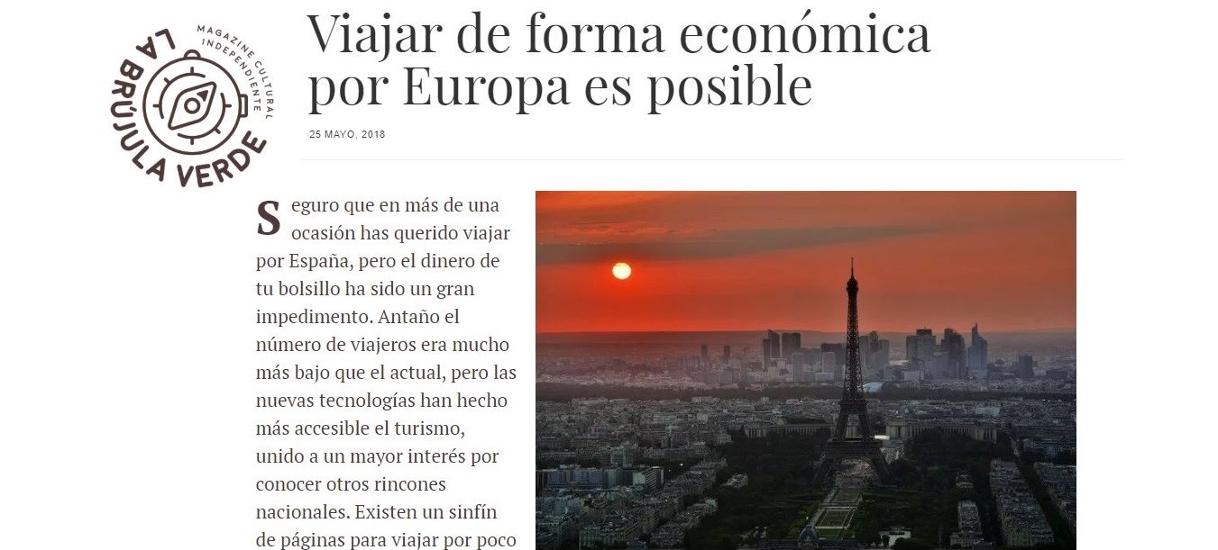 Hemos sido mencionados en la página web de La Brújula Verde, un blog sobre tecnología y cultura online. En su noticia se habla sobre la manera de viajar de forma económica por Europa y con nuestra web, es posible. Asimismo, no es necesario salir de España para descubrir lugares increíbles.