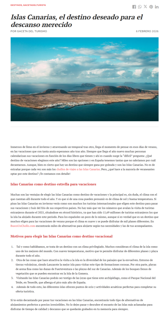 En la Gaceta del Turismo mencionan nuestros chollos a las Islas Canarias