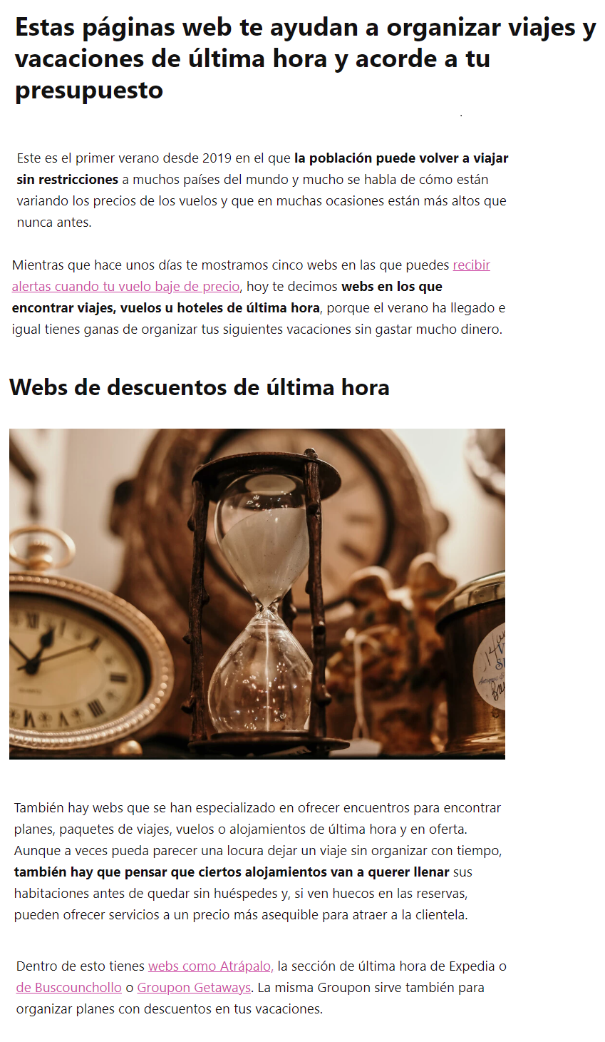 Nos mencionan como una de las webs de descuentos de última hora que destacamos por precio y buenas ofertas de viaje.