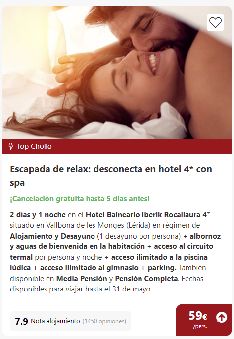 En buscounchollo.com tenemos ofertones de viajes muuuy guays, la mayoría de ellos duran entre 7-9 días ⚡, Ya que son ofertas flash, es decir que, durante esos días tenemos las ofertas más baratas del mercado por todo lo que incluimos en el chollo. 💥