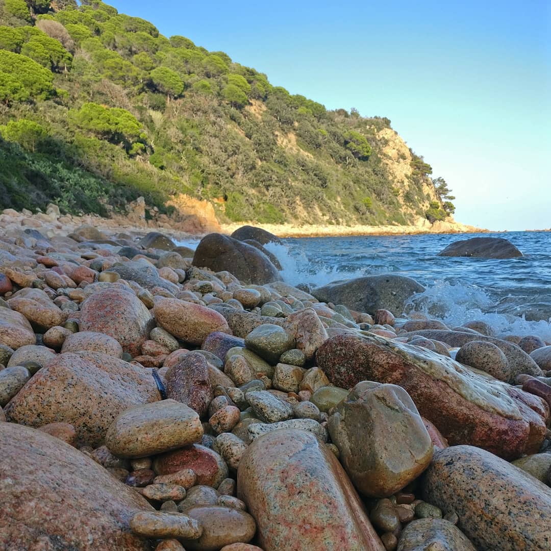 Sin ir más lejos, alojándote en nuestros hoteles en la Costa Brava baratos, podrás acceder a calas tan poco frecuentadas como espectaculares. Como la magnífica cala Vallpresona, la primera que nos encontramos al llegar al término municipal de Santa Cristina de Aro, si accedemos por la carretera de la costa desde Sant Feliu de Guíxols. Deberás aparcar el coche en la zona de aparcamiento junto a unos contenedores y seguir el rótulo que nos indica el camino de bajada a pie a través de una pineda. En un cuarto de hora, llegaremos a esta cala de piedras grandes (no son muy cómodas, pero con ayuda de algún cojín, uno/a se puede tumbar sin problemas). Si bien necesitarás escarpines y guantes para entrar en el agua, te aseguramos que el paisaje y la limpieza de sus aguas, repleta de peces, compensan este pequeño esfuerzo. Todo ello sin olvidar que, si no estás tú solo/a, poco te faltará.