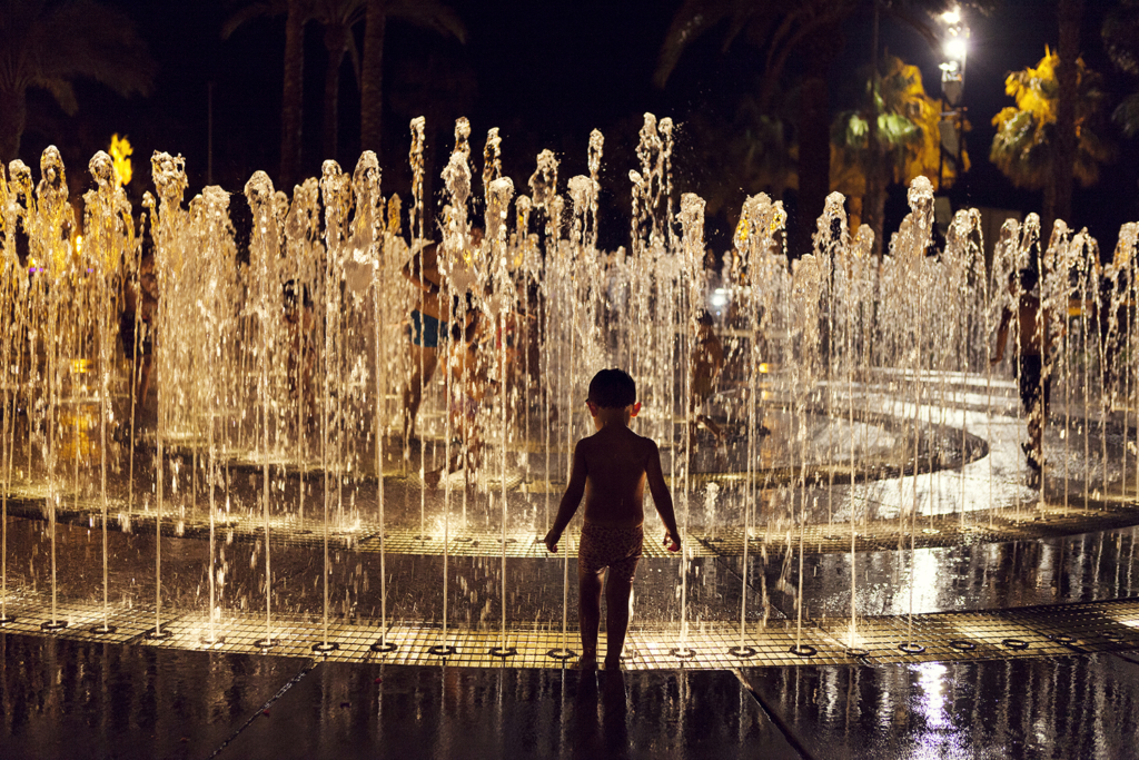 - La Fuente Cibernética: Se encuentra ubicada al inicio del paseo marítimo y ofrece una coreografía de agua, luz y música que podrás contemplar cada anochecer. No olvides pasar con tus hijos por los puentes que pasan por debajo de las fuentes de agua intentando no mojaros, aunque eso es una tarea imposible.