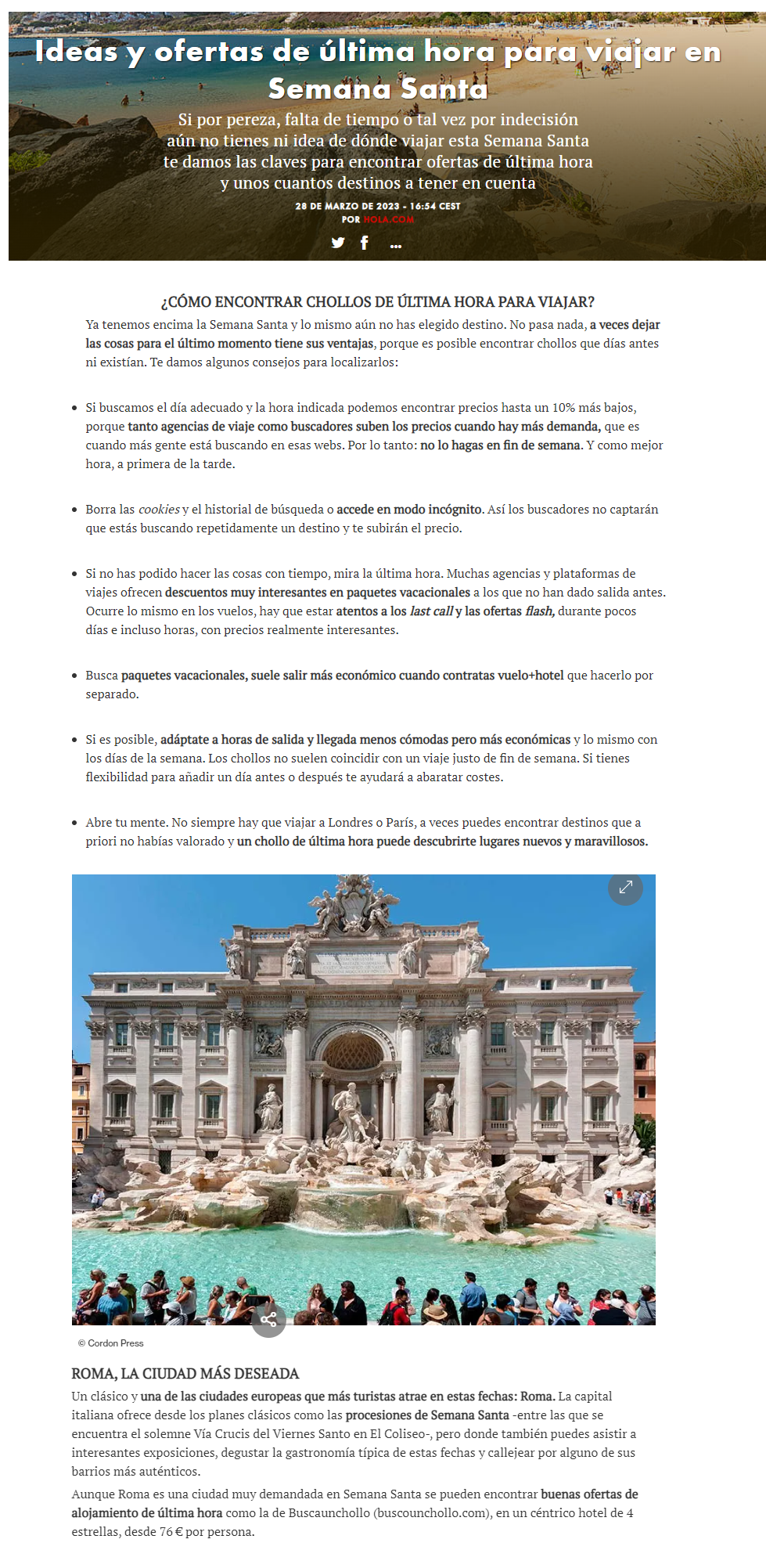 ¿Sin ideas para Semana Santa? En Hola.com destacan una de nuestras ofertas más TOP