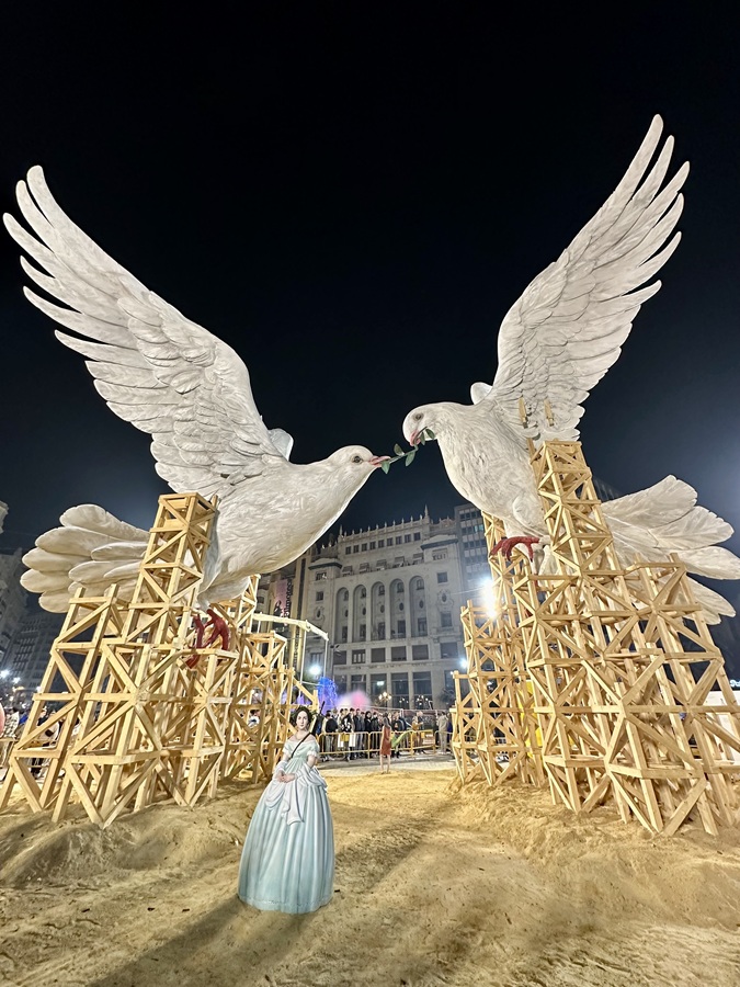 Y esta es la Falla del Ayuntamiento del año 2024, la cual hacía referencia a la Paz 🕊️La Ofrenda de Flores a la Virgen estas Fallas 2025