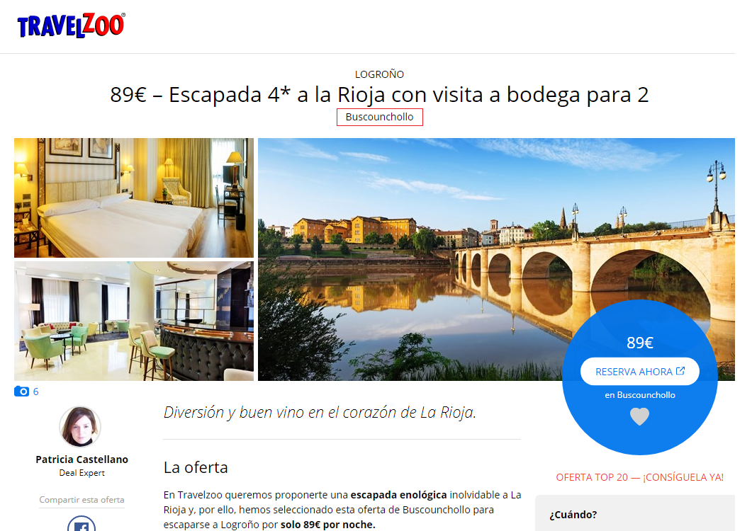 Reaparecemos por segunda semana consecutiva en el top 20 de Travelzoo, esta vez connuestro chollo en La Rioja, que incluye escapada enológica.
