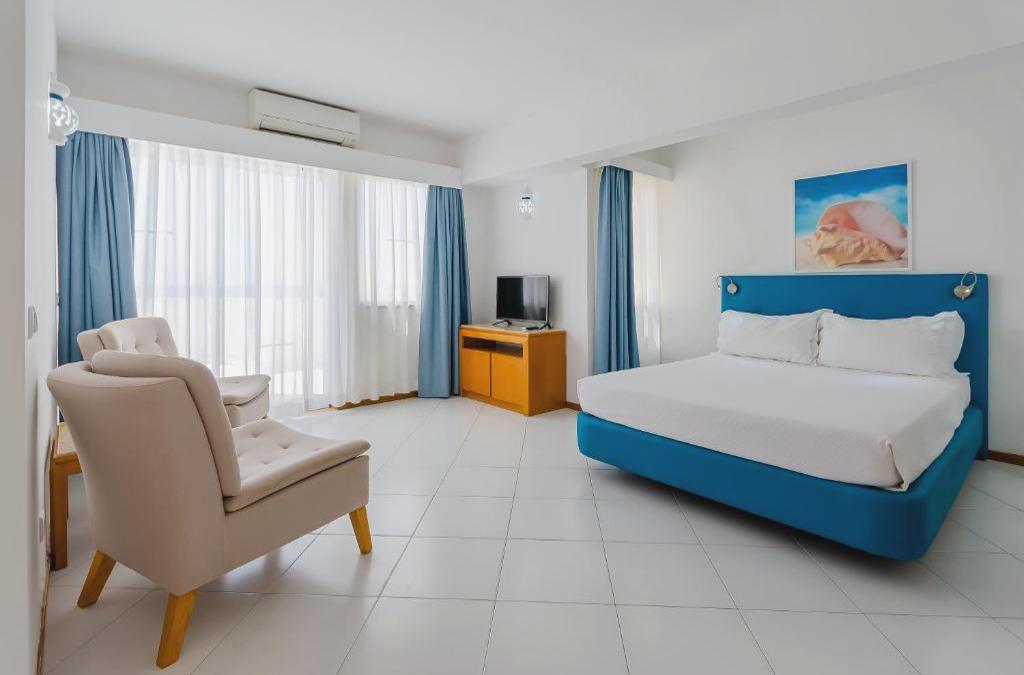 Habitaciones grandes con aire acondionado tele de plasma la habitacion que nos dieron tenia una gran terraza y ademas de todo daba al mar un lujo