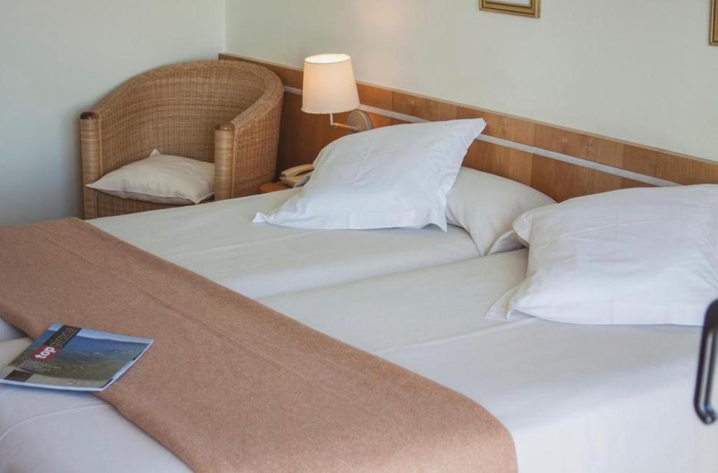 Habitación grande, cama cómoda, una mesa grande, dos butacas y televisión de buen tamaño. Baño amplio con bañera y secador. Todo muy limpio. Una terraza grande y balcón con persiana eléctrica. Frente al hotel hay aparcamiento. Desayuno variado y embutidos de calidad. Sin grandes lujos, pero muy cuidado, mejor que la mayoría de hoteles de tres estrellas.