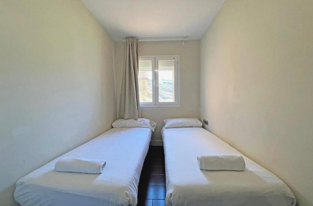 El problema era que el aparta hotel estaba arriba del pueblo y para bajar eran 20 m. Andando. Las camas eran individuales, y al mobiliario un poco viejo.