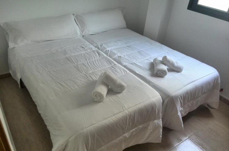 Son apartamentos nuevos, tan nuevos que aun tienen la lechada de las baldosas, no hay toalleros y los wáteres estaban sin tapa y con el botón de tirar la cadena roto.