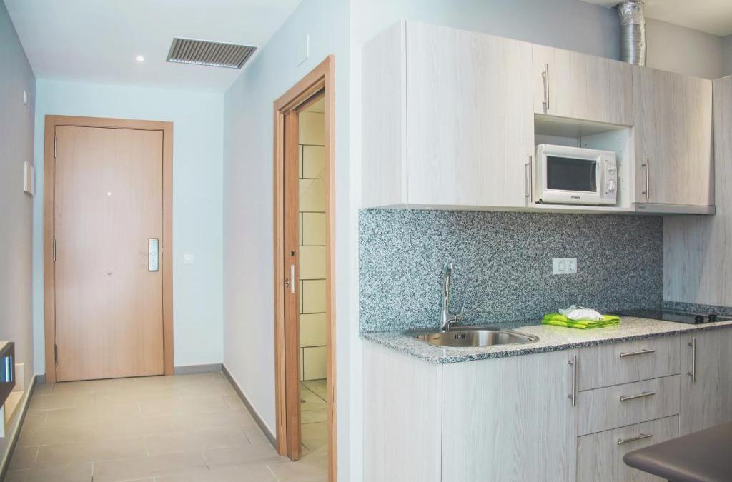 • Apartamento 1 dormitorio 2-4 plazas: Cuenta con una habitación con 2 camas individuales, sofá-cama doble en el salón comedor y cocina americana equipada con lo necesario. Dispone de baño completo con ducha o bañera y secador de pelo.