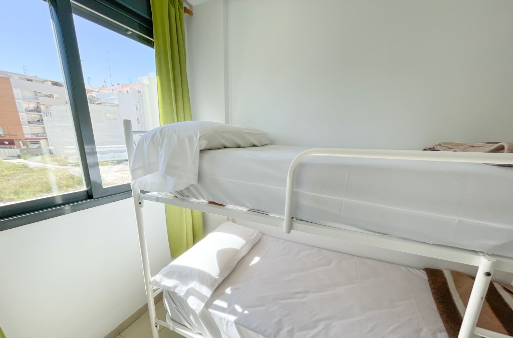 El apartamento estaba genial, limpio y todo recogido, la playa esta cerca y comercios a la vuelta de la esquina. Eran dos habitaciones una con cama de matrimonio y la otra con litera y un sofá cama que te proporcionan ellos las sabanas.