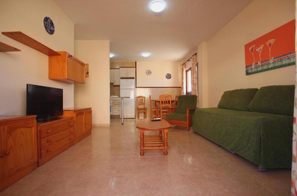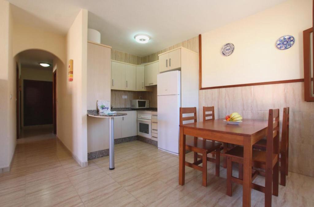 Los apartamentos del Tesy II presentan un diseño funcional y suelo de baldosa. Incluyen salón comedor con TV de 32 pulgadas, zona de cocina moderna con horno, fogones y microondas, y conexión Wi-Fi gratuita.