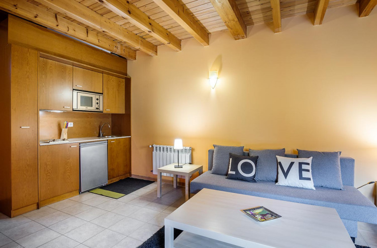 • Apartamentos Rusticos de 2 a 4 plazas: 1 habitación, salón con sofá-cama, cocina y baño.