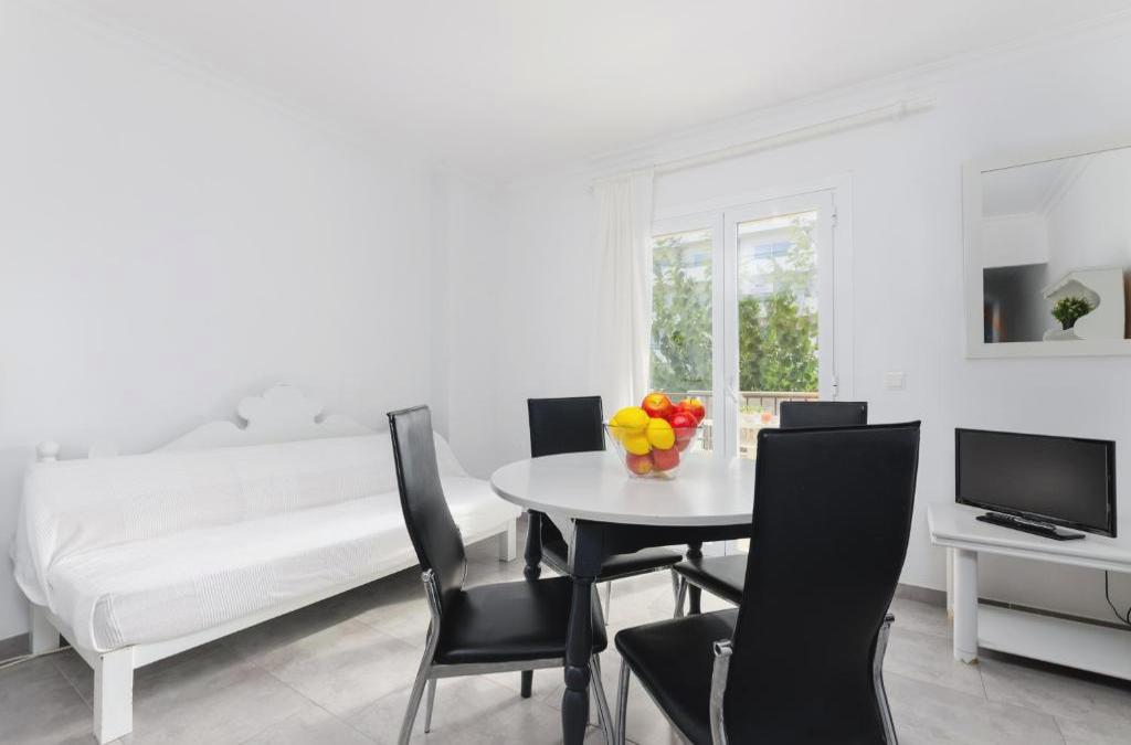 Apartamento 1 dormitorio (3 plazas): Cuenta con un dormitorio con 2 camas individuales, cocina-comedor con un sofá cama individual, baño completo con ducha y balcón o terraza.