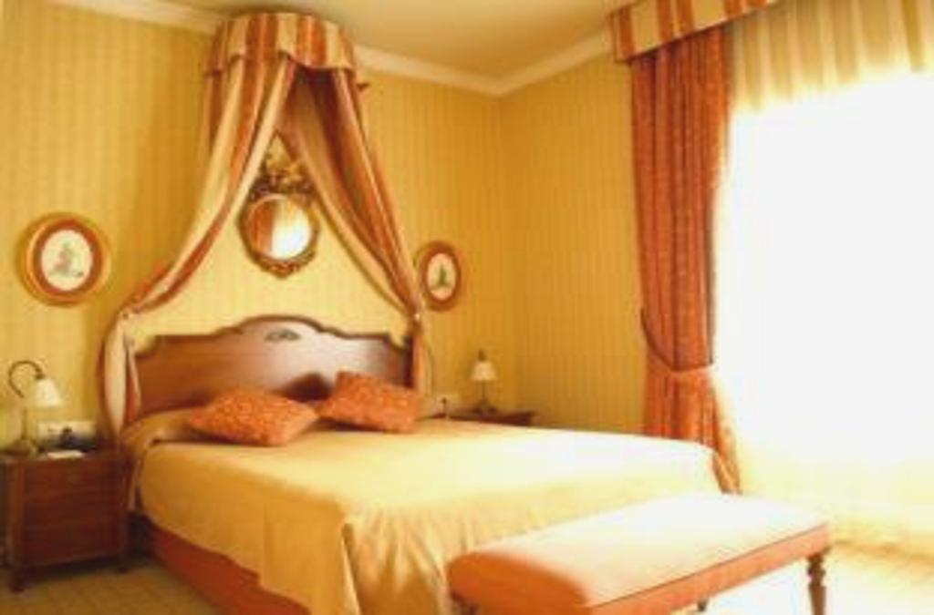 Las amplias habitaciones del Pelayo cuentan con muebles elegantes de madera, aire acondicionado y una TV.