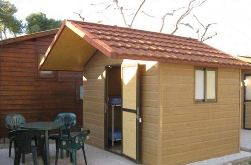 Los bungalows ofrecen: Cama matrimonio y litera, estantería, mesita de noche, mesa y 4 sillas para la terracita.