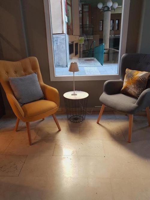 Zona difícil para aparcar ya que se encuentra en el centro. Todos los aparcamientos son de pago (zona azul) o parking privado (18 euros/día). Justo debajo del hotel, se sitúan dos bares con terraza exterior, el ruido se oye desde las habitaciones, ya que éstas son viejas y sus ventanas de madera. Incluso el propio ruido que hacen otros huéspedes (entrar o salir de la habitación, conversar...), se percibe desde la habitación. En resumen, se oye todo. El hotel cuenta con ascensor, pero para acceder a él hay que subir una serie de escalones, por lo que para una persona con discapacidad le sería complicado. En mi habitación sólo había dos enchufes, uno situado en el baño y el otro es para la televisión, por lo que si se necesitan enchufar varios dispositivos a la red eléctrica, un poco complicado.