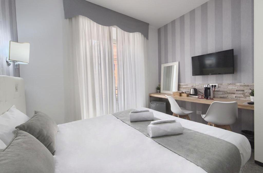 El Vaticano Treasure ofrece habitaciones modernas, insonorizadas, climatizadas que disponen de WiFi, televisión, cafetera, escritorio, minibar, y baño completo con ducha y bañera, secador de pelo y artículos de aseo.