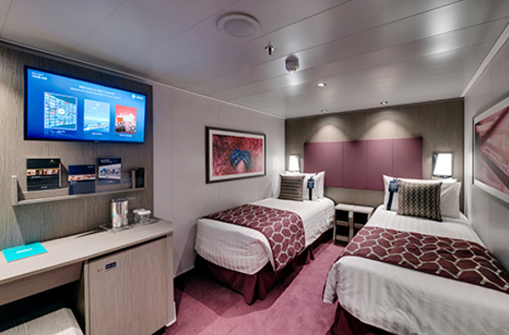 • Camarote interior (14 m2): dispone de televisión, teléfono, conexión wi-fi de pago, caja fuerte, minibar y baño completo con ducha y secador de pelo.