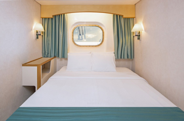 Restaurante con mismo menú todas las noches. Camarotes pequeños con 3 y 4 camas. Barco antiguo.
