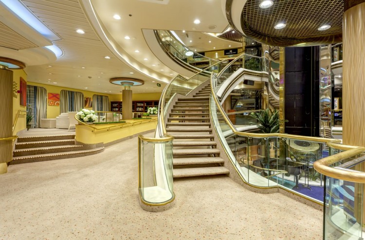 Por si todo esto fuera poco, el barco Monarch también cuenta con dos canchas de shuffleboard y un espectacular atrio de 7 plantas con una escalera de mármol, que se encuentra rodeado de boutiques, tiendas y salones para la celebración de todo tipo de eventos. Y si tras visitar todos estos lugares, aún quieres darte un chapuzón, puedes hacer en los piscinas de agua salada que se ubican en cubierta superior.