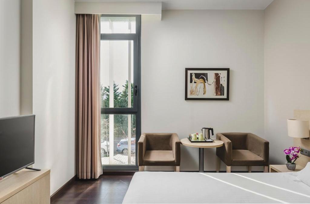 El hotel cuenta con cuatro plantas, dos ascensores y sus habitaciones están perfectamente equipadas, con TV de pantalla plana, caja fuerte y conexión Wi-Fi gratuitos.