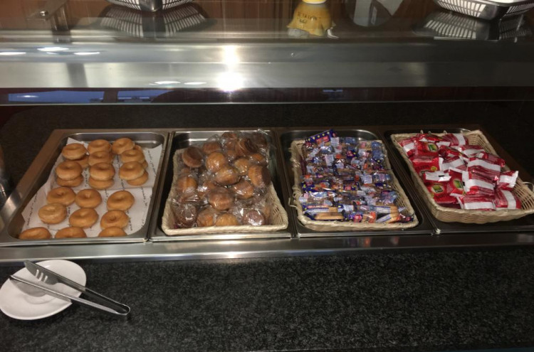 Encontre el hotel un poco oscuro. Necesita una mano de pintura con colores mas claros y modernos. Solo panecillos y pan de molde, me falto pan de payes.