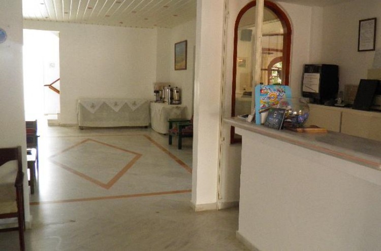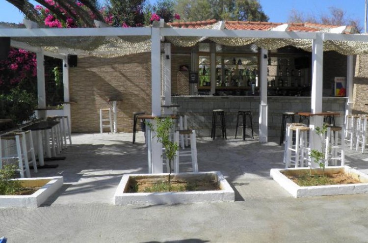 El restaurante sirve platos griegos y pizza en un patio tradicional a la sombra de los pinos. También hay un bar donde se ofrecen bebidas refrescantes, cócteles y zumos recién exprimidos. Se sirve un desayuno continental todos los días.