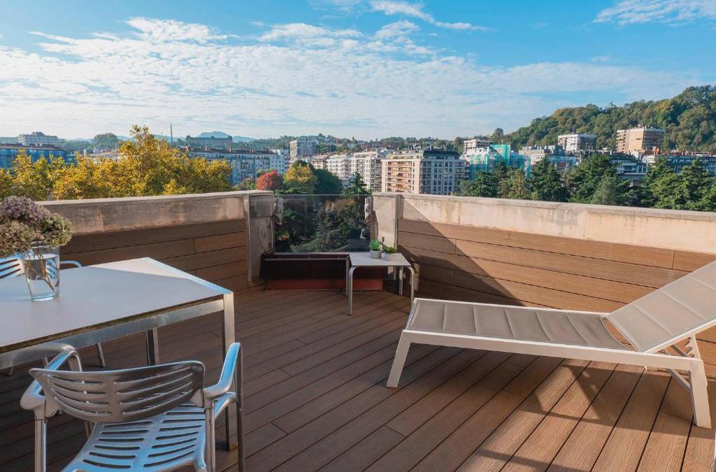 Un edificio moderno, obra del reconocido arquitecto Peña Ganchegui, ubicado en la Plaza Pio XII, muy bien comunicado con los accesos a la ciudad, permite ir caminando hasta cualquier punto de la ciudad, tal como el Palacio de Congresos del Kursaal, a la ciudad deportiva de Anoeta, a la Playa de la Concha, así como al casco antiguo donde podrá degustar sabrosos pintxos elaborados con productos típicos de la zona.