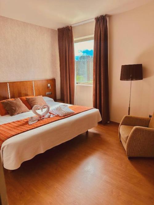 Este hotel se sitúa en el parque de negocios Lalín 2000 y a solo 2 km del centro de Lalín. Goza de una ubicación estratégica en el corazón de Galicia, a 45 km de Santiago de Compostela y a 50 km de Orense. El hotel ofrece un fácil acceso a la AP-53 Orense-Santiago de Compostela, mientras que la estación de autobús dista 4 km y la estación de tren en Botos queda a alrededor de 8 km. Los huéspedes encontrarán lugares para salir por la noche en el centro urbano, a unos 4 km del establecimiento, el centro comercial Pontinas se halla a 3 km y el robledal carballeira das Casianas está a solo 2 minutos caminando. Otros lugares de interés cercanos son A Coruña (a una hora y cuarto en coche), la cascada de La Toja y el monasterio de Carboeiro (ambos a 15 minutos en coche) y la zona de viñedos de Ribeira Sacra (a una hora y media conduciendo). La playa más próxima queda a una hora de trayecto y el aeropuerto de Vigo a aproximadamente 137 km. Este hotel de negocios es un símbolo de modernidad y practicidad. Sus amplias instalaciones y posición estratégica lo hacen ideal tanto para huéspedes en viaje de negocios como de vacaciones. El complejo de spa climatizado fue construido en 2010 y ofrece 50 habitaciones en total. Recibe a sus huéspedes en el vestíbulo, con servicio de recepción y salida 24 horas, caja fuerte y ascensor a las plantas superiores. Otras instalaciones son cafetería, restaurante, bar salón, instalaciones para conferencias, conexión a Internet WiFi, servicio de habitaciones y de lavandería. Los huéspedes que lleguen en coche pueden dejar su vehículo en el aparcamiento o garaje. Las modernas y funcionales habitaciones están perfectamente dotadas con escritorio, cama doble y cuarto de baño privado con ducha, bañera, secador de pelo y espejo cosmético. Las prestaciones se completan con minibar, caja fuerte, TV, conexión a Internet, teléfono de línea directa, aire acondicionado y calefacción central.
