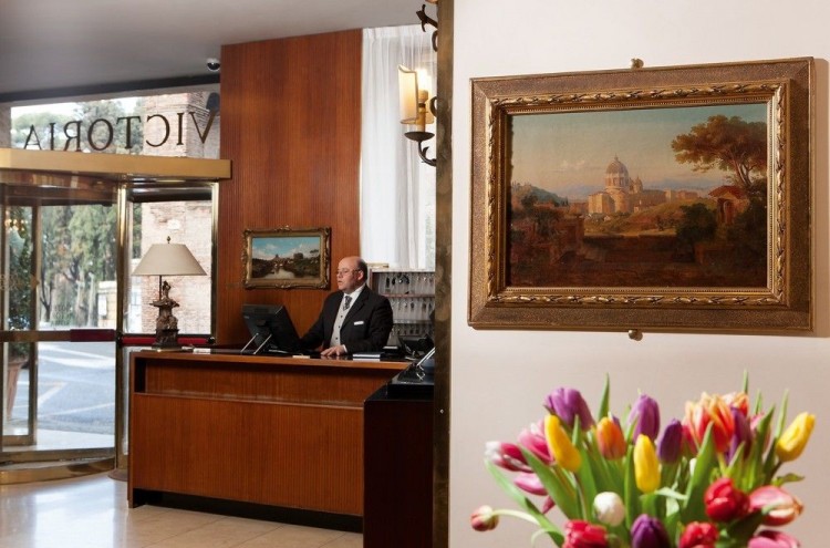 El Hotel Victoria está situado en una zona céntrica y tranquila de Roma, junto a las antiguas murallas romanas y enfrente de los jardines de Villa Borghese. Fue construido a finales del siglo XIX y presenta obras de arte originales, salones elegantes y una terraza panorámica en la azotea.