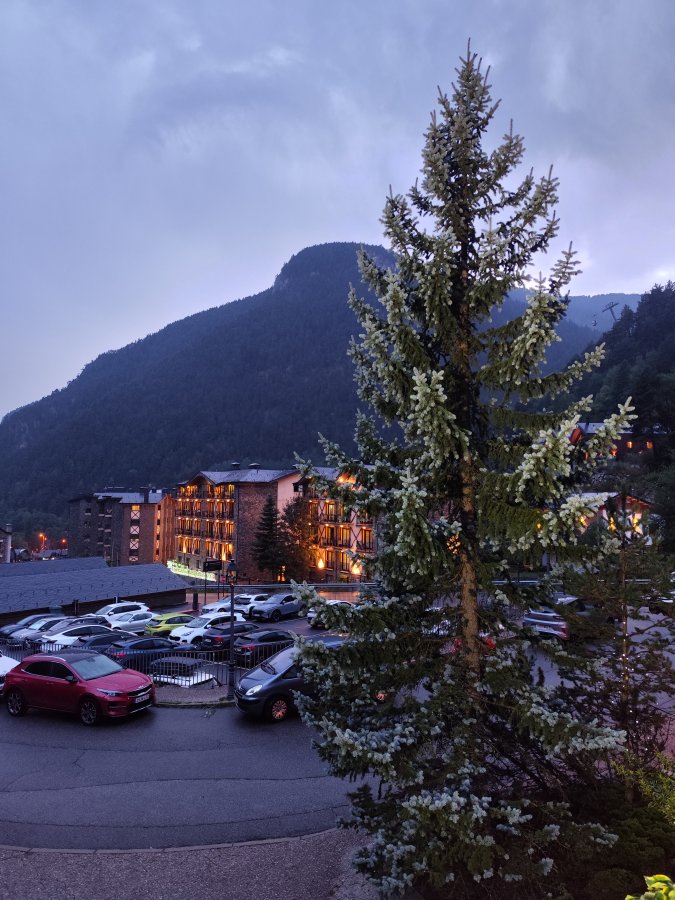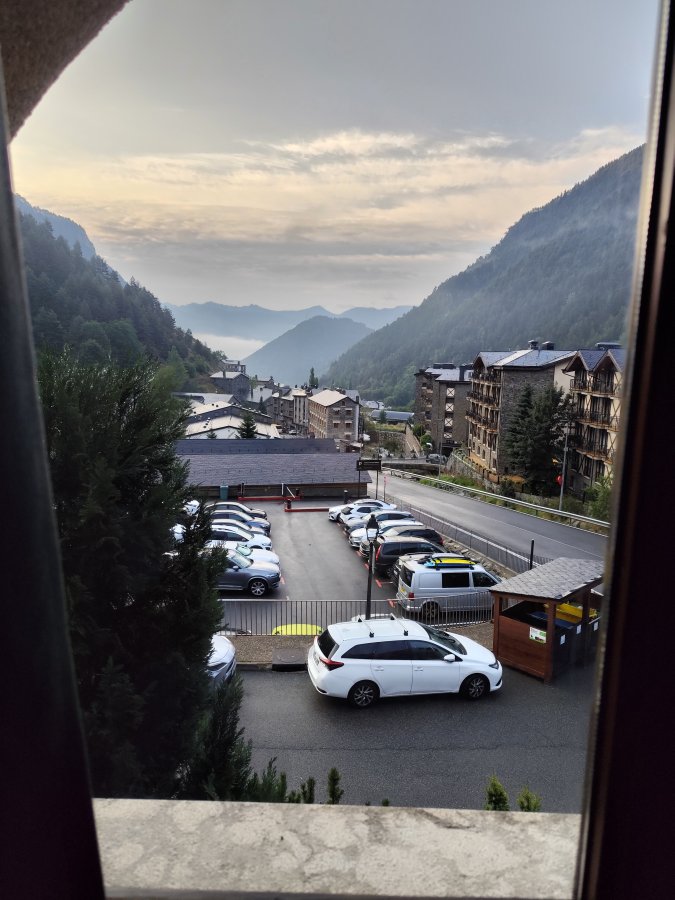 El parking gratuito ,ya que no es usual que se pueda aparcar bien en Andorra. La comida abundante, buena y variada. Desayuno buffet y cena con primeros buffet y segundo y postre a escoger. La vista desde la habitación ( al estar elevado se ve preciosa la montaña) La piscina climatizada al aire libre es una pasada de relax. Cerca , andando, hay una cascada preciosa.El baño de la habitación era grande y con ventana. La gente repite, será por algo.