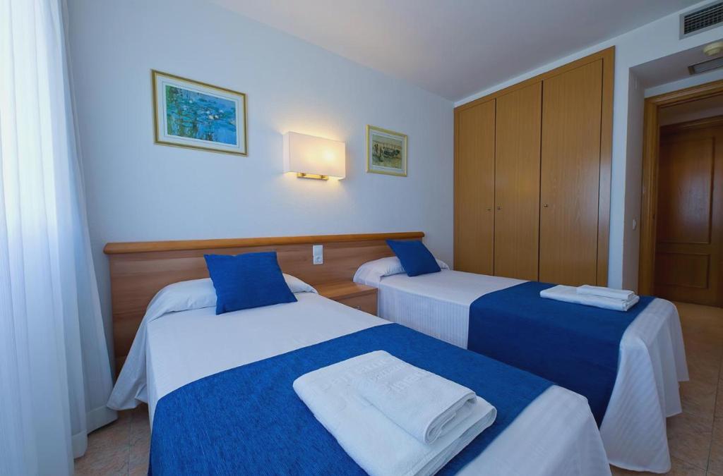 Encontrarás apartamentos de dos y tres dormitorios y todos ellos disponen de: aire acondicionado, televisión, sábanas, toallas, cocina independiente equipada con vitrocerámica, nevera, horno, microondas, cafetera, hervidor de agua y menaje de cocina, un baño completo con ducha o bañera, kit de bienvenida, secador de pelo (¡pídelo en recepción!) y un aseo. Además, todos los apartamentos ofrecen una amplia terraza con mobiliario exterior.