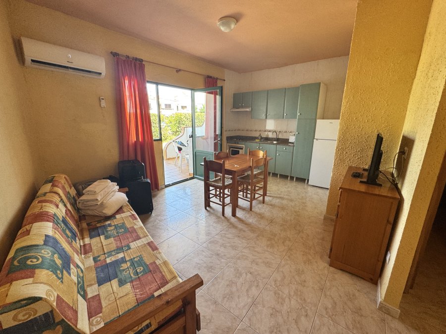 Apartamentos básicos pero con todo lo necesario, aire acondicionado y piscina estupenda y muy limpio todo. Personal muy amable, tostador no funcionaba bien y nos lo cambiaron y lo mismo con la cafetera. Durante la estancia en el apartamento dos cambios de toallas y dos limpiezas básicas pero suficiente. Muy contentos con el viaje en general, tanto el ferry como el alojamiento.