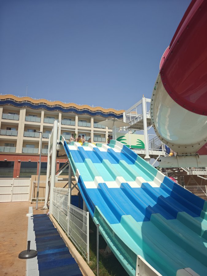 reserva de hamacas. Gestión de colas para toboganes . Criterios de estatura diferentes según socorristas y dependiendo de la hora y de colas de espera. Sólo dos camas para dos adultos y un niño. La comida normal , el cocinero salía a compensar con platos fuera de buffet a los clientes que se quejaban