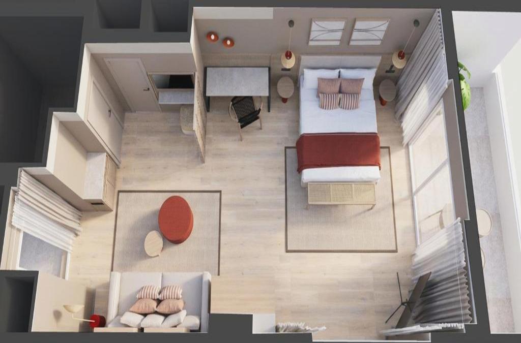 Todas las habitaciones son amplias, con mucha luz y vistas a los alrededores del hotel. En ellas encontrarás un dormitorio que puede tener una cama doble o 2 camas individuales, una zona de salón-comedor equipada con sofá-cama, cocina (con microondas, nevera y unos fogones), mesas y sillas, televisión, conexión wifi gratuita, y balcón. Además, el cuarto de baño es completo con ducha o bañera, amenities básicas y secador.
