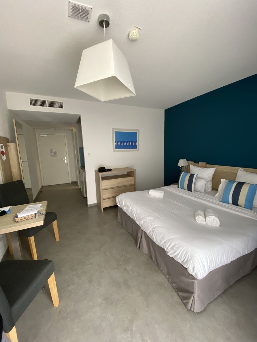 La recepcionista con un inglés de A1 penoso. Sólo francés. Intentaron cobrarnos la sauna que ya iba incluida en tarifa, y quitarnos un desayuno, y no nos informaron del precio de la tasa turística y no nos quisieron dar ticket con la excusa de no tener papel. Tuvimos que reclamar la limpieza de la habitación 2 veces la hicieron a las 6 de la tarde, poca variedad en el buffete solo pastas y dulces. No tenían leche sin lactosa, todas las habitaciones con tendedero menos la nuestra que también se reclamo para colgar los bañadores y toallas mojadas. El WiFi muy malo sin señal.