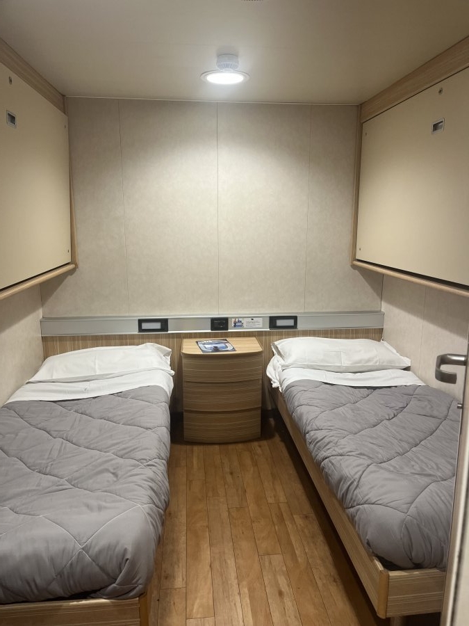 El ferry de la compañía Grimaldi, muy mal señalizado para encontrar el camarote,no tenía WiFi en todo el barco....ni pagando, y eso creo que se debía de avisar, cuándo pregunté me dijeron que hacía tiempo que no les funcionaba, un verdadero desastre,