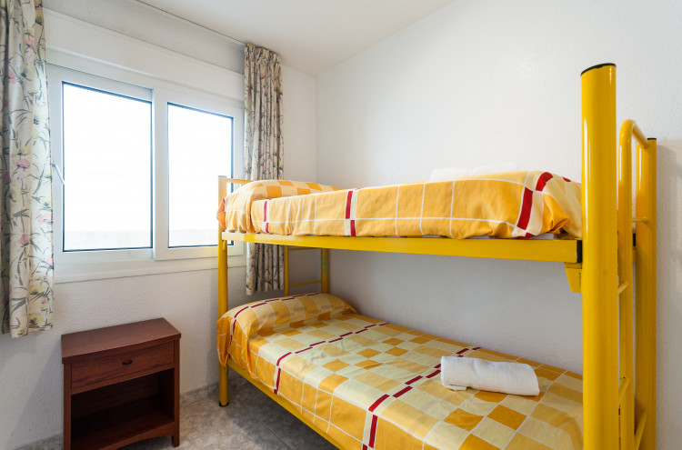 • Apartamento de 2 dormitorios (6 plazas):  Cuentan con dos habitaciones: una de ellas con cama de matrimonio y la otra con dos camas individuales o literas. En el salón comedor hay un sofá-cama convertible de dos plazas. Disponen de una zona de cocina americana con: vitrocerámica, frigorífico, microondas, horno, lavadora, vajilla-cubertería, menaje básico, cafetera y TV.