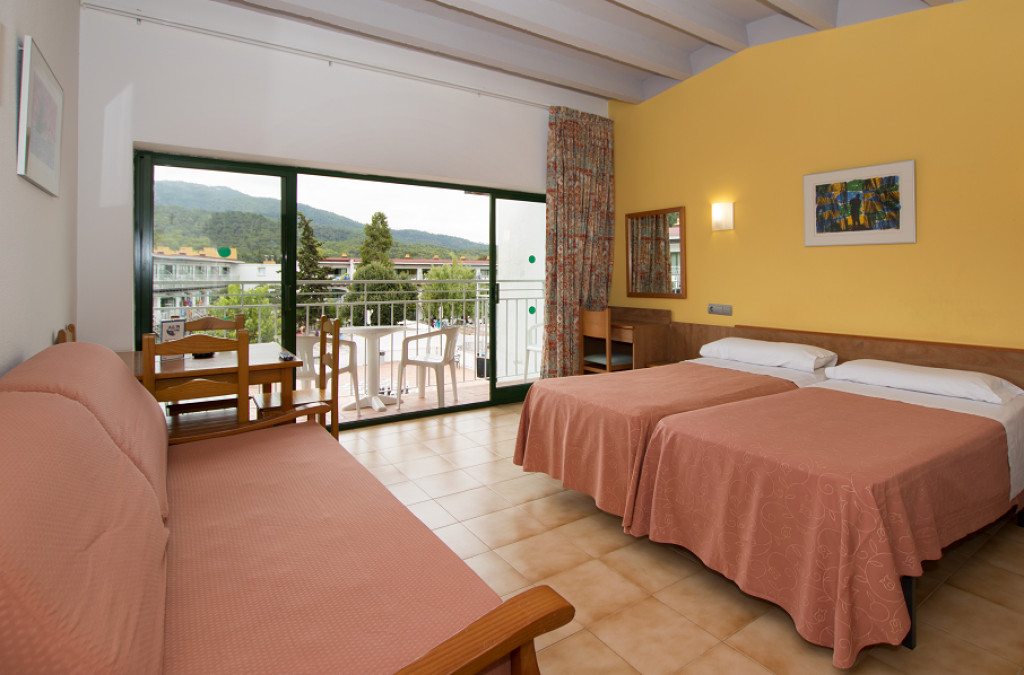 • Apartamento 1 dormitorio (4 plazas): Cuentan con 1 habitación con 2 camas individuales y dos sofás cama tipo nido en el salón comedor.