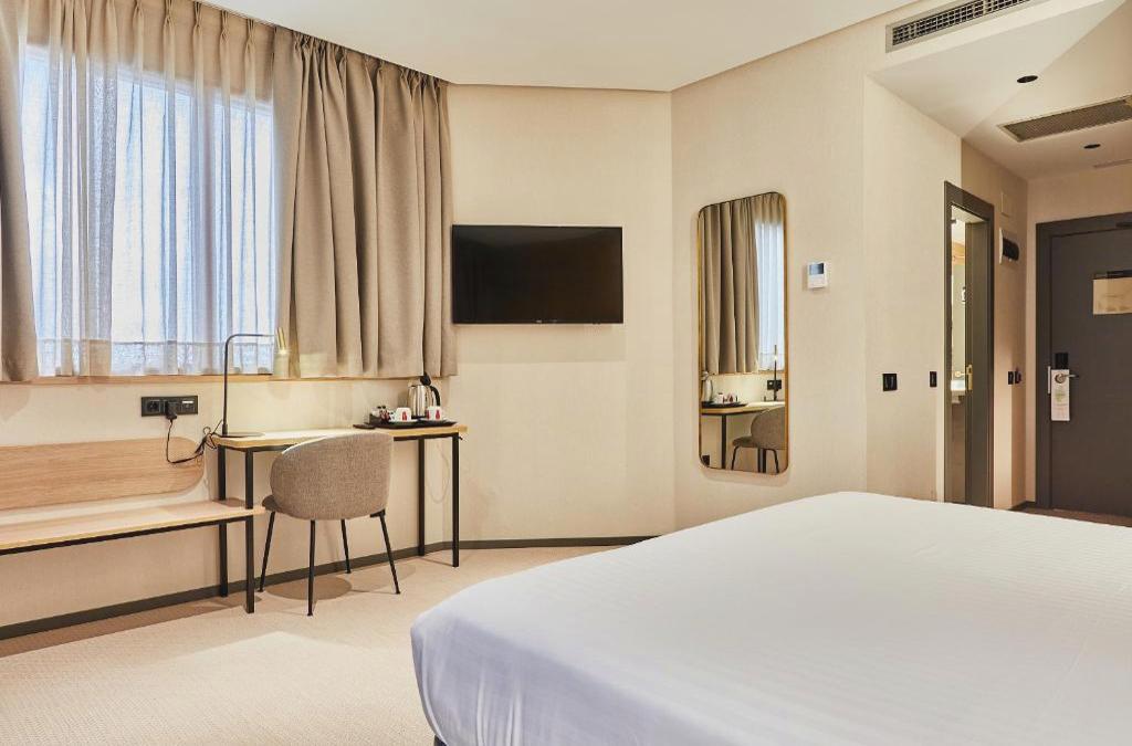 Las habitaciones son amplias y luminosas y disponen de aire acondicionado y calefacción, conexión wifi gratuita, televisión, teléfono, mini-bar, caja fuerte (gratuita), mesa-escritorio y un baño completo con bañera (excepto en las habitaciones adaptadas) secador de pelo y amenities.