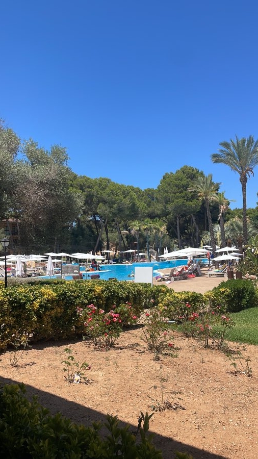 El hotel Amplio reformado con unos jardines cuidados,la atención de sus trabajadores excelente excepto el fram que no saludan,las piscinas de niños bien,y los camareros del restaurante de éxito en educación.