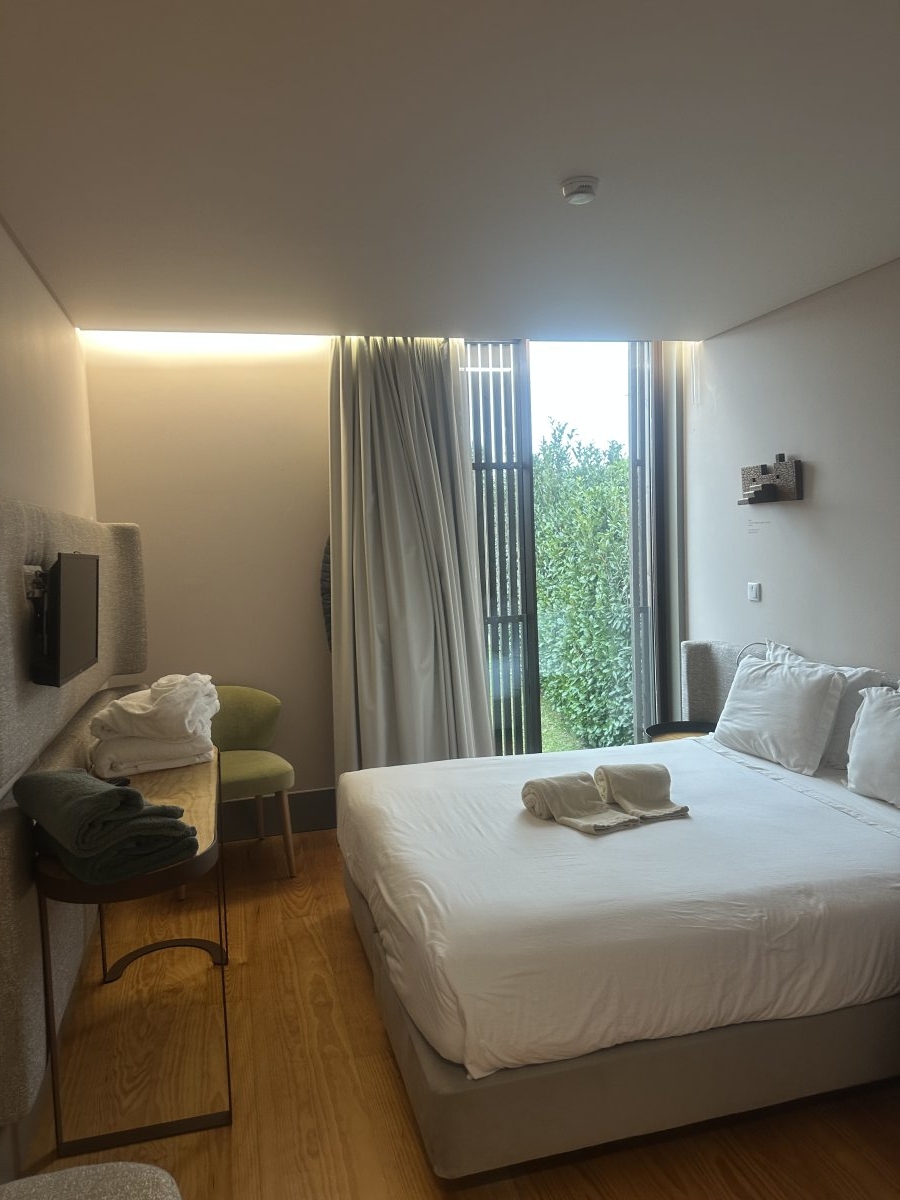Todo perfecto. El hotel tiene mucho encanto, apartado de todo, lo que te da una tranquilidad absoluta pero la posibilidad de estar en Oporto en 20min. Está muy bien cuidado, muy nuevo y muy limpio (tanto las instalaciones como las habitaciones), todo el hotel huele de maravilla. El personal es muy amable, siempre pendientes de que todo esté bien. Parking gratuito. Piscina abierta 24h es una maravilla con el agua calentita. Teníamos media pensión, el desayuno muy bien pero las cenas estaban genial (los postres caseros han sido de los mejores que habíamos probado nunca). Muy Muy Recomendable!!! Nos han hecho las vacaciones muy agradables 🥰