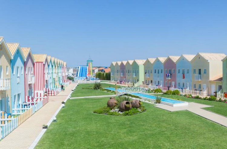 • El hotel alberga un parque acuático de temporada y está situado frente a una playa de arena.