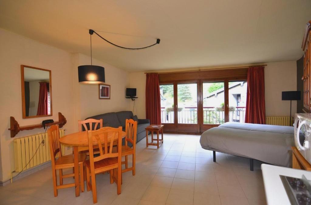 • Estudio con capacidad de 2 a 4 personas - 1 pierna twin al salón, 1 aseo, 1 sofá-cama para 2 pax en el salón comedor. Tv satélite, cocina equipada y balcón.
