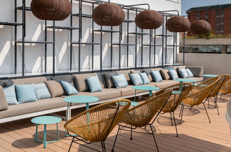 • Las habitaciones tienen un toque ecléctico, minimalista y moderno con personalidad.  Disponen de aire acondicionado, TV LED, teléfono, caja de seguridad, mini nevera, cafetera con cápsulas de café de bienvenida, armario, baño completo con secador de pelo y amenities.