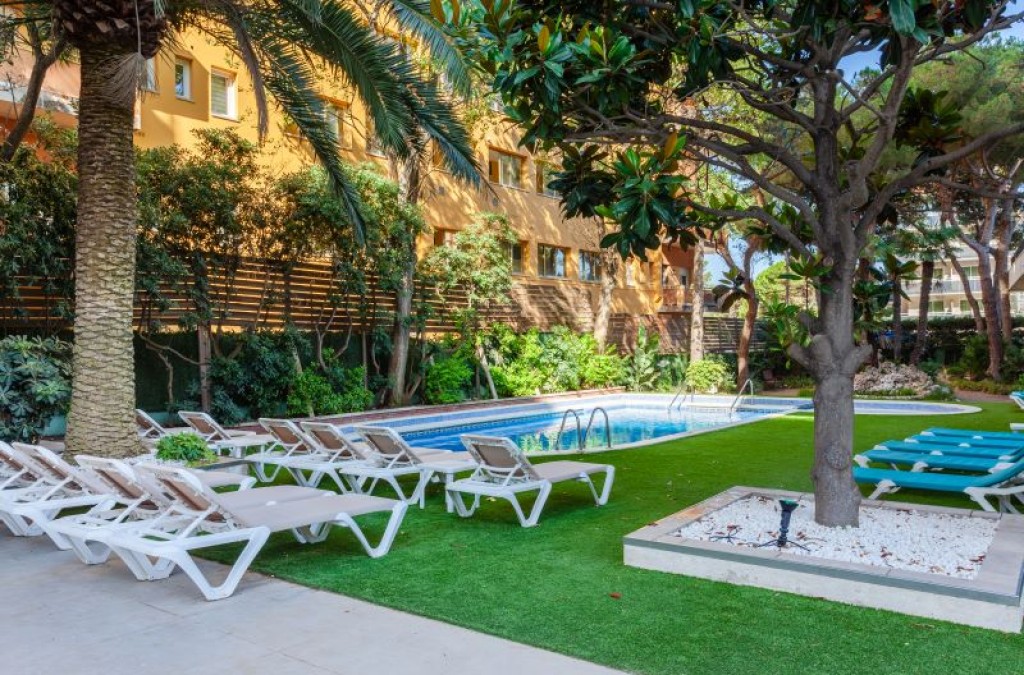 Excelente relación calidad-precio. Ubicación inmejorable al lado de la playa. Personal muy amable. Bar-lounge abierto todo el día. Bufet variado y rico. Espacios comunes muy amplios: terraza, jardines, las dos zonas de piscinas con hamacas, cafeteria-lounge, sala de juegos. Secador y taburete en el baño. Terraza con mesa y sillas en cada habitación. Buena limpieza. Pàrquing donde dejar el coche conectado en ascensor con el hotel. Permite mascotas.