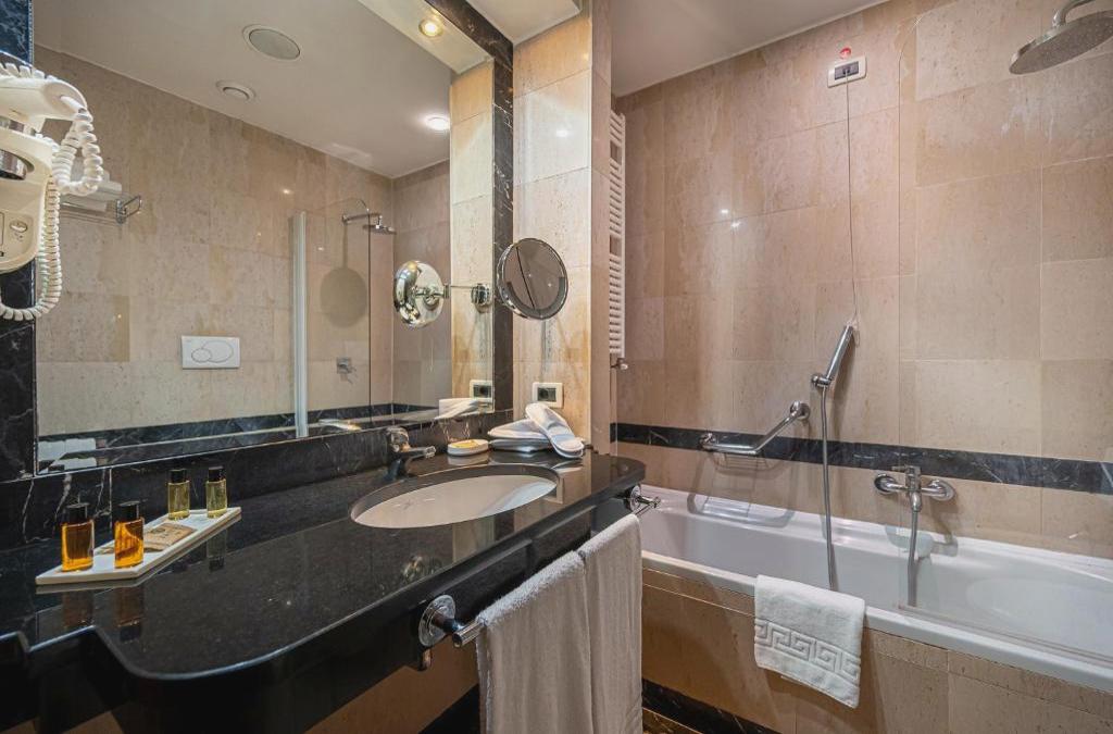 En las imagenes ponía que tendríamos una habitación con terraza y no nos dieron esa habitación, pero preguntamos y nos dijeron que si era habitación superior, nos dijeron que las habitaciones que mostraban eran superior suite. Otra cosa que no me gustó es que la ducha es de cortina, no creo que cueste mucho poner una mampara y asi no dejar todo el suelo mojado, porque el plato de la ducha no tragaba muy bien.